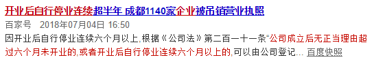 《公司登记管理条例》明文规定:“公司成立后无正当理由超过六个月未开业的,或者开业后自行停业连续六个月以上的,可以由公司登记机关吊销营业执照。”